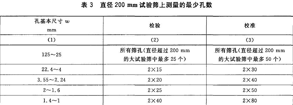 直線,每條至少150 mm 長,每個方向上至少有8 個篩孔。如果任一篩孔超過了尺寸公差,此試驗篩則為不合格。如果在穿孔板上的篩孔未達到在一個或兩個方向上檢查所要求的篩孔的最小數(shù)目,則檢查試驗篩上所有的篩孔。